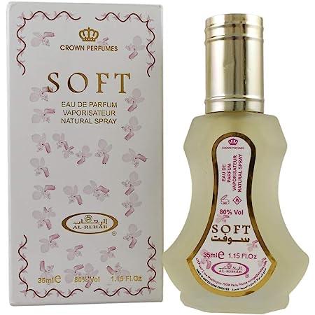 Al-Rehab Soft Eau de Parfum, a natural spray perfume available in a 35 ml (1.15 fl. oz) bottle.