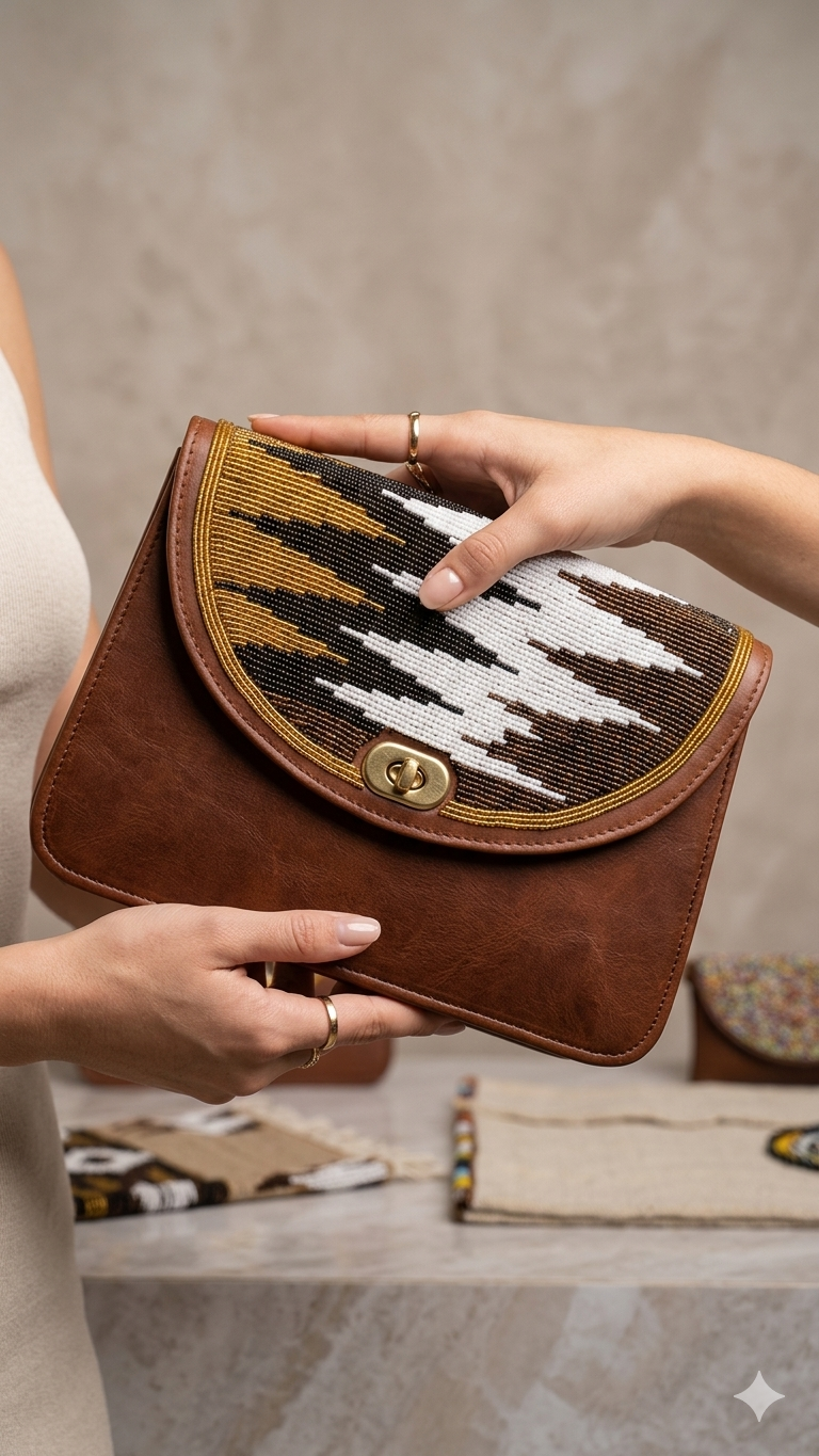 This handcrafted Maasai-inspired leather clutch is a blend of traditional East African artistry and contemporary fashion. Based on the visual details and cultural context, here are the product specifications: