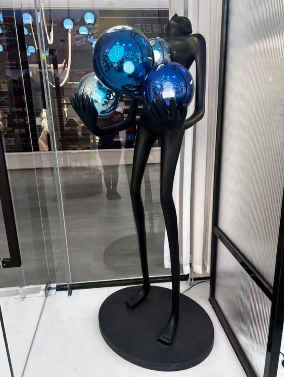 This item is a modern humanoid sculpture floor lamp featuring a minimalist figure holding luminous light spheres, commonly referred to as an “Art Human Balls Floor Lamp”.