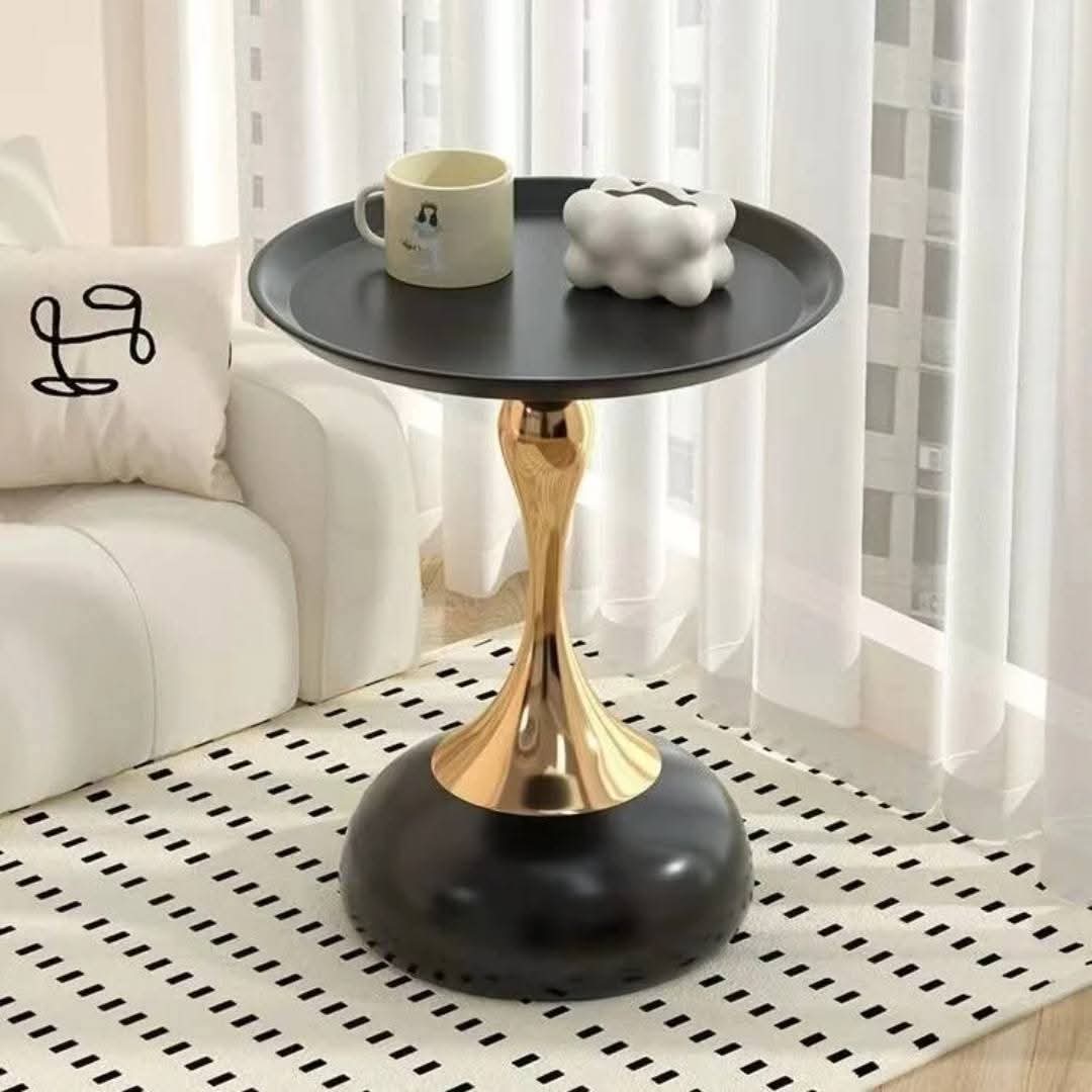 - The Top: A circular tray-style tabletop with a raised lip. This design is both aesthetic and practical, preventing items like mugs or jewelry from sliding off the edge.