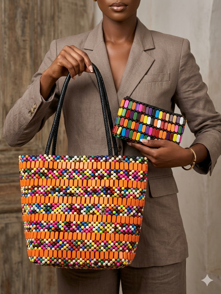 Artisan Craftsmanship: Each bead is hand-woven into intricate geometric patterns, ensuring a unique and durable finish that machine-made bags can’t replicate.